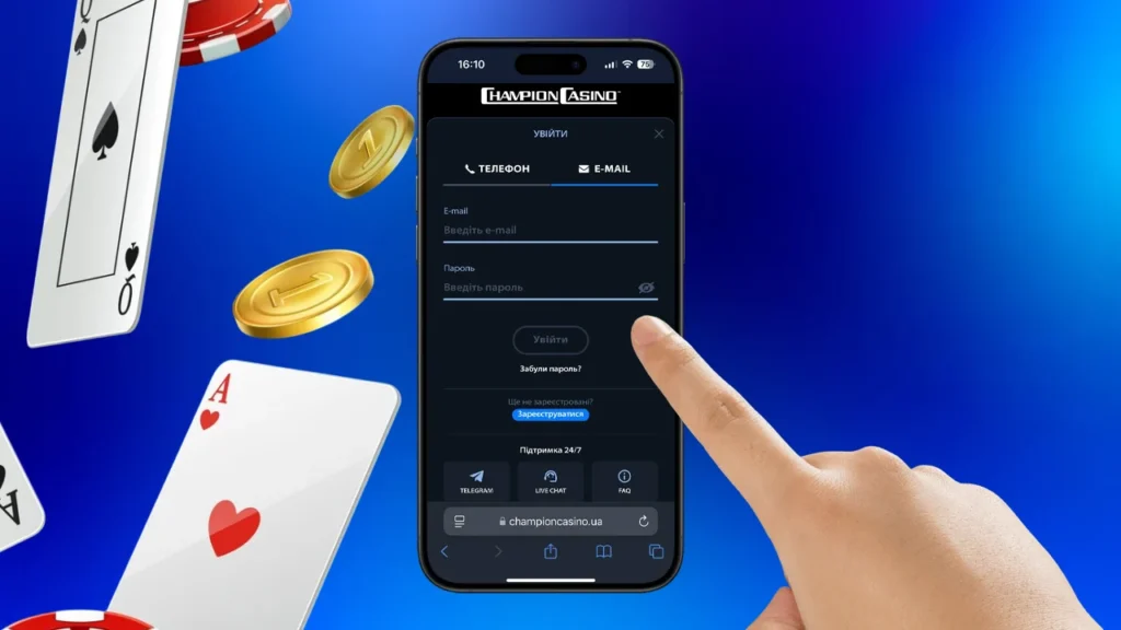 Вхід у Сhampion casino можна здійснити кількома способами, що дозволяє швидко та безпечно потрапити в особистий кабінет і користуватися всіма функціями платформи.